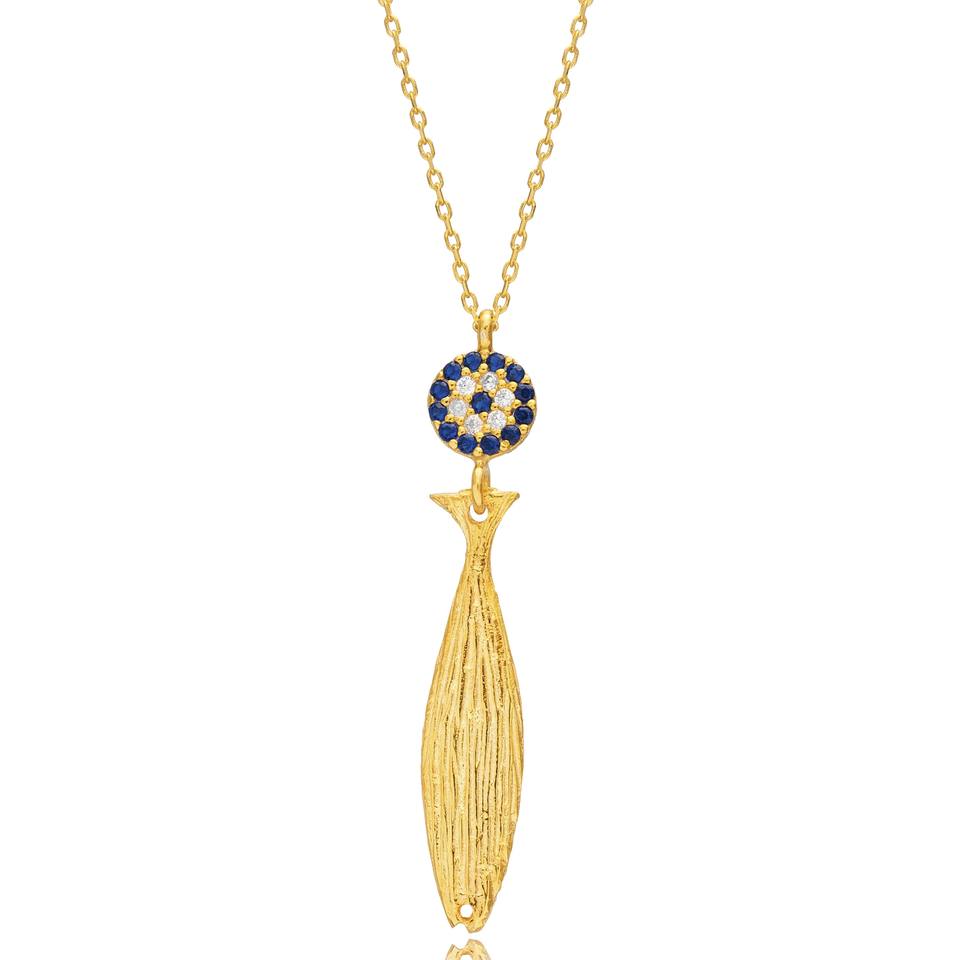 Boucles d'oreilles longues en argent sterling 925, motif poisson, pierre CZ œil de turc, forme ronde, fabrication artisanale turque