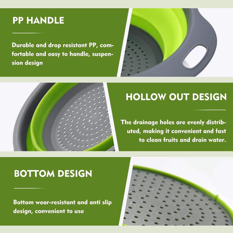 Passoire pliable de qualité alimentaire de forme ronde avec poignées, sans BPA, différentes tailles, passoire de cuisine pliable pour évier