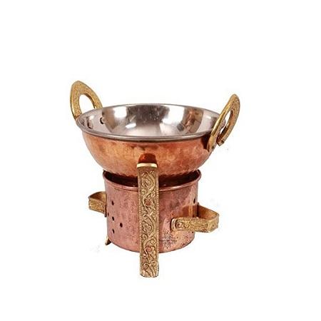 Plat de service de nourriture de forme ronde Tendance Design Réchauffeur de nourriture en cuivre Plat de chauffe-plats avec poignées pour l'utilisation de mariage