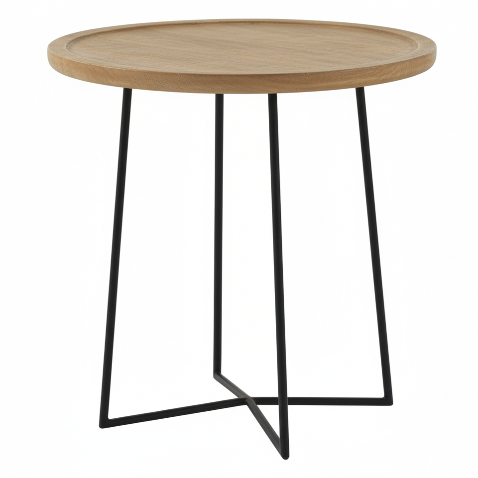 Cadre de forme ronde Base en métal et bois Top Side Industrial Design table basse minimaliste Table d'appoint de ferme moderne personnalisée