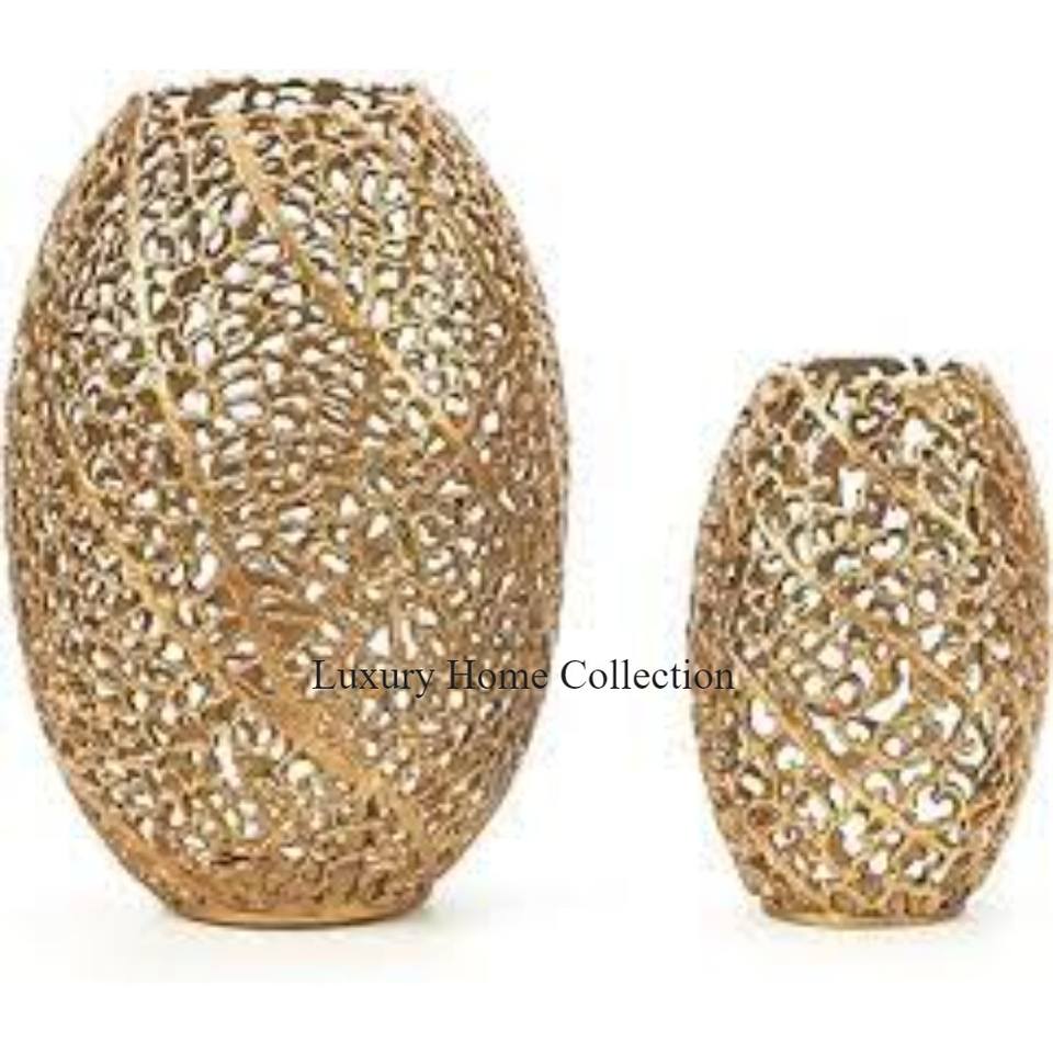 Vase de décoration de maison aspect luxueux de forme ronde Vase de décoration de table et de sol de mariage de couleur dorée OEM et ODM disponibles
