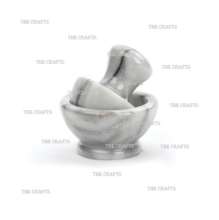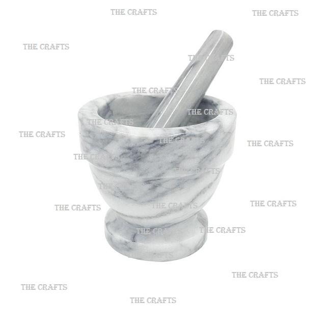 Morter et pilon en marbre de forme ronde pour accessoires de cuisine concasseur et broyeur Morter pilon ensemble en Inde