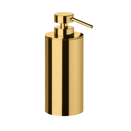 Distributeur de savon liquide en métal de forme ronde de haute qualité de couleur dorée distributeur de savon liquide de taille personnalisée à vendre