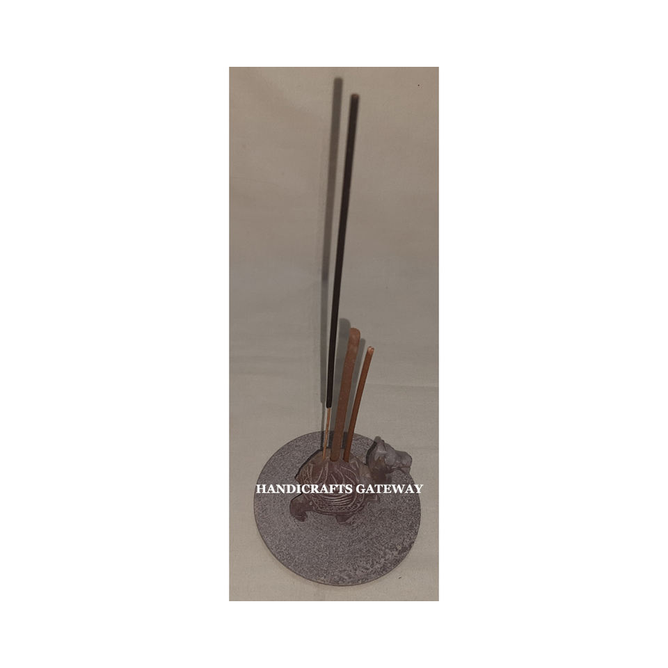 Support pour bâtonnets d'encens en pierre ollaire naturelle de forme ronde, sculpture artisanale, motif de chameau, finition polie, utilisé pour la décoration des temples