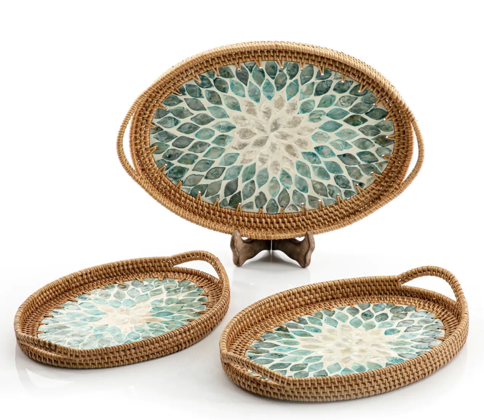 Ensemble de forme ronde de trois plateaux de service alimentaire MOP Design fantaisie Look élégant plateau de service à soupe pour la cuisine et la table