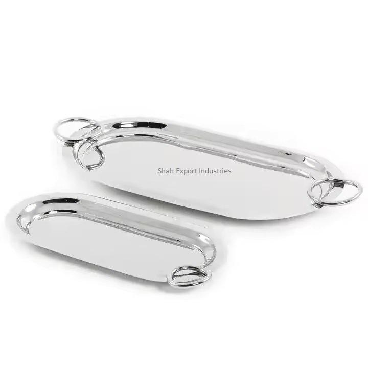 Plateau de service de table en forme de rectangle avec poignée en branches Plateau de service de nourriture et de boissons de restaurant plaqué argent