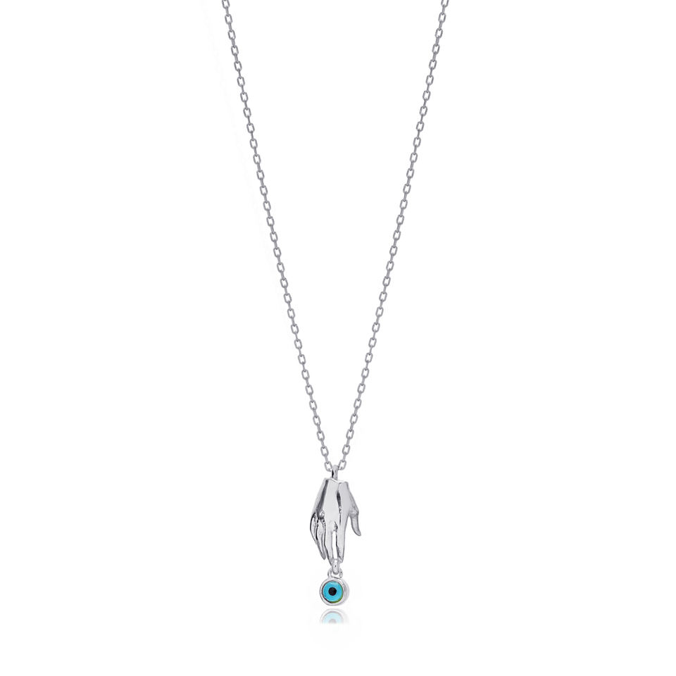 Round Shape Turkish Eye Hand Design Charm Necklace Pendant Turkish Handmade Wholesale 925 Sterling Silver Jewelry
