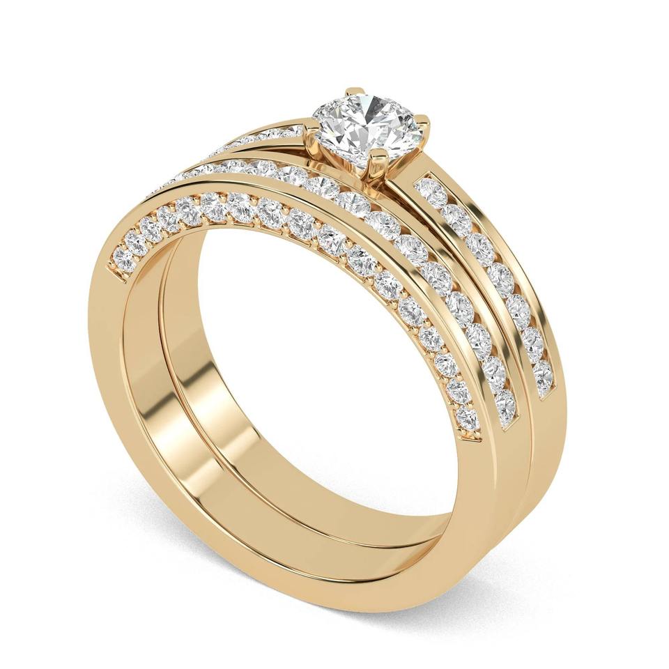 Conception: Bague d'épaule avec diamants ronds et alliance assortie