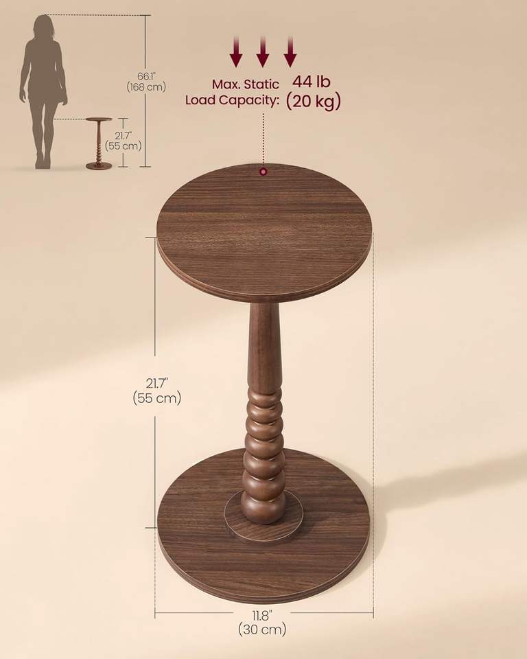 Round Side Table, Small Drink End Table for Small Spaces, Accent Nightstand, Solid Wood Leg, Mid-Century Modern, for L