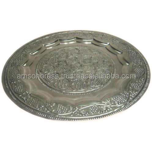 Assiette de service ronde en argent de haute qualité