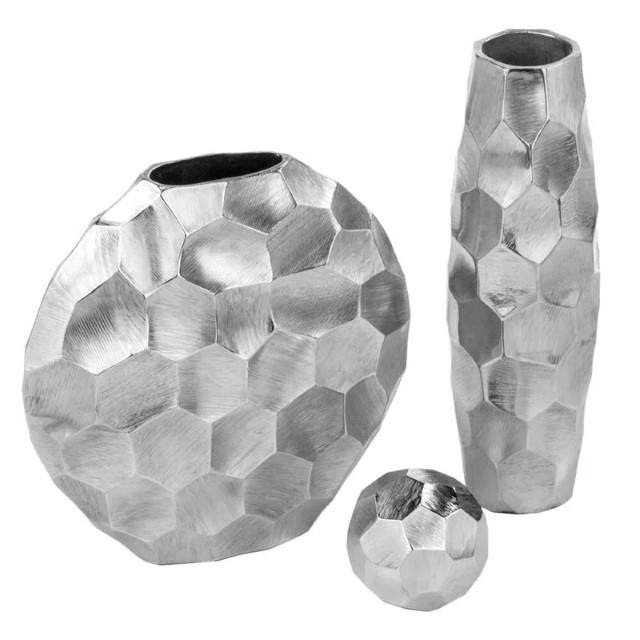 Vase rond en argent ou accents modernes Vase en argent à facette ou Vase rond en argent à facettes Brayden Studio