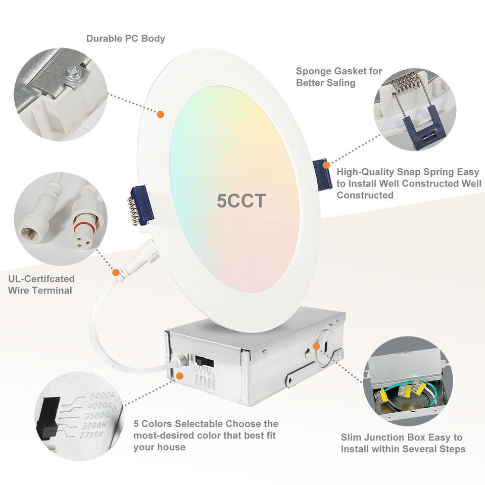 Plafonniers encastrés ronds et fins à haute luminosité 12W, dimmables, 6 pouces, avec boîte de jonction, panneau lumineux LED