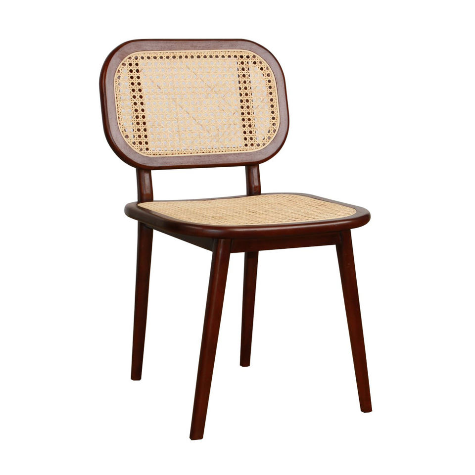 Chaise de salle à manger ronde en bois de mahogany massif et rotin pour la maison, la villa, l'appartement et l'hôtel