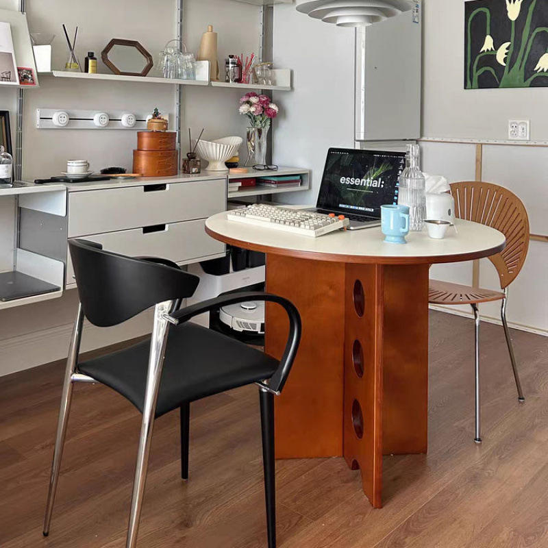 Round Solid Wood Dining Table With Perforations Modern Minimalist Design For Small Homes French Style Stable Structure