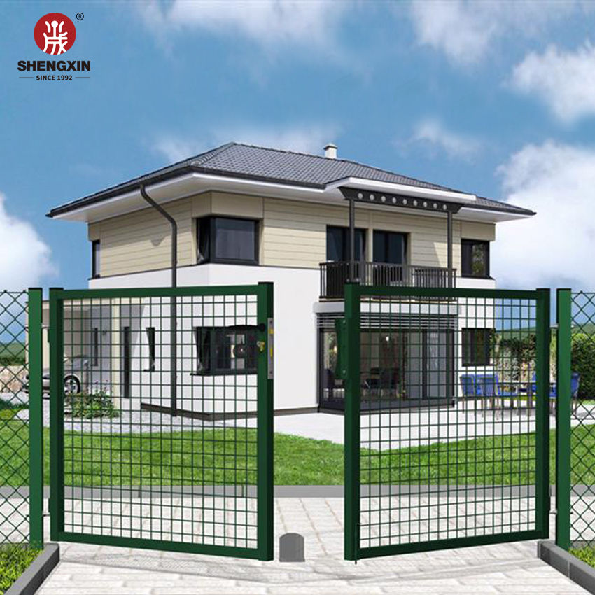 Tube rond/carré enduit de poudre panneau de treillis métallique soudé ferme métal double barrière de jardin avec serrure