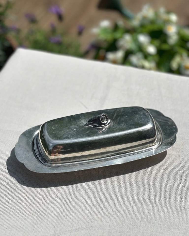 Beurrier rond en acier inoxydable pour beurre standard, surface polie et design moderne