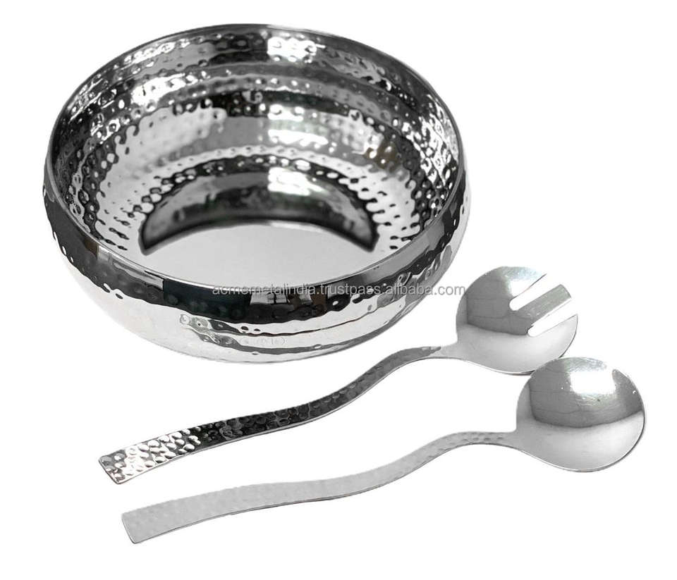 Bol à mélanger rond durable en acier inoxydable avec design martelé, idéal pour la préparation des aliments et la cuisine à domicile