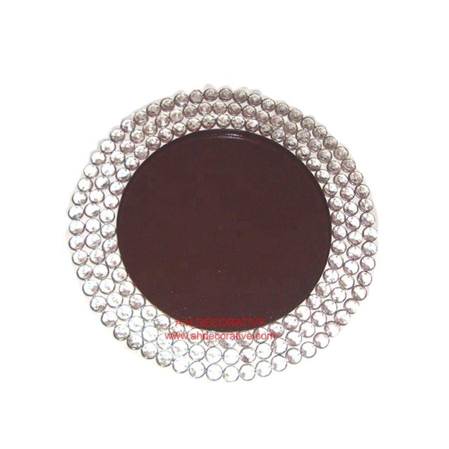 Plaque de chargeur en métal avec bordure perlée en cristal, objet artisanal, 1 pièce