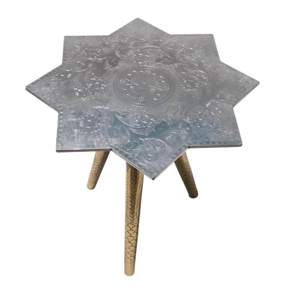 Table ronde avec gaufrage or et fond Table basse ou d'appoint ronde en aluminium fini nickel à trois pieds pour meubles de maison