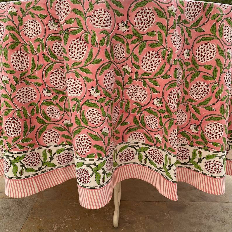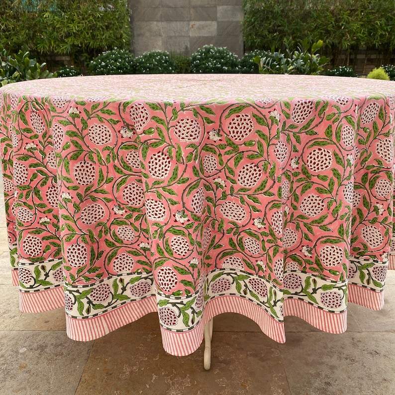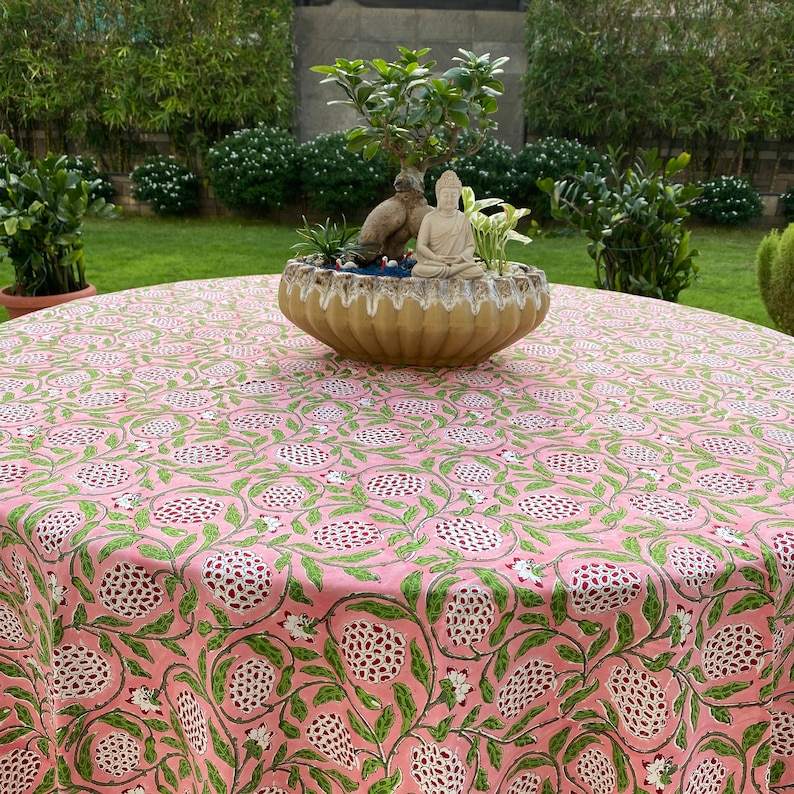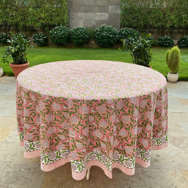 Nappe ronde, couverture de table imprimée florale de bloc de main indienne, nappe française vintage, impressions botaniques, maison et vie