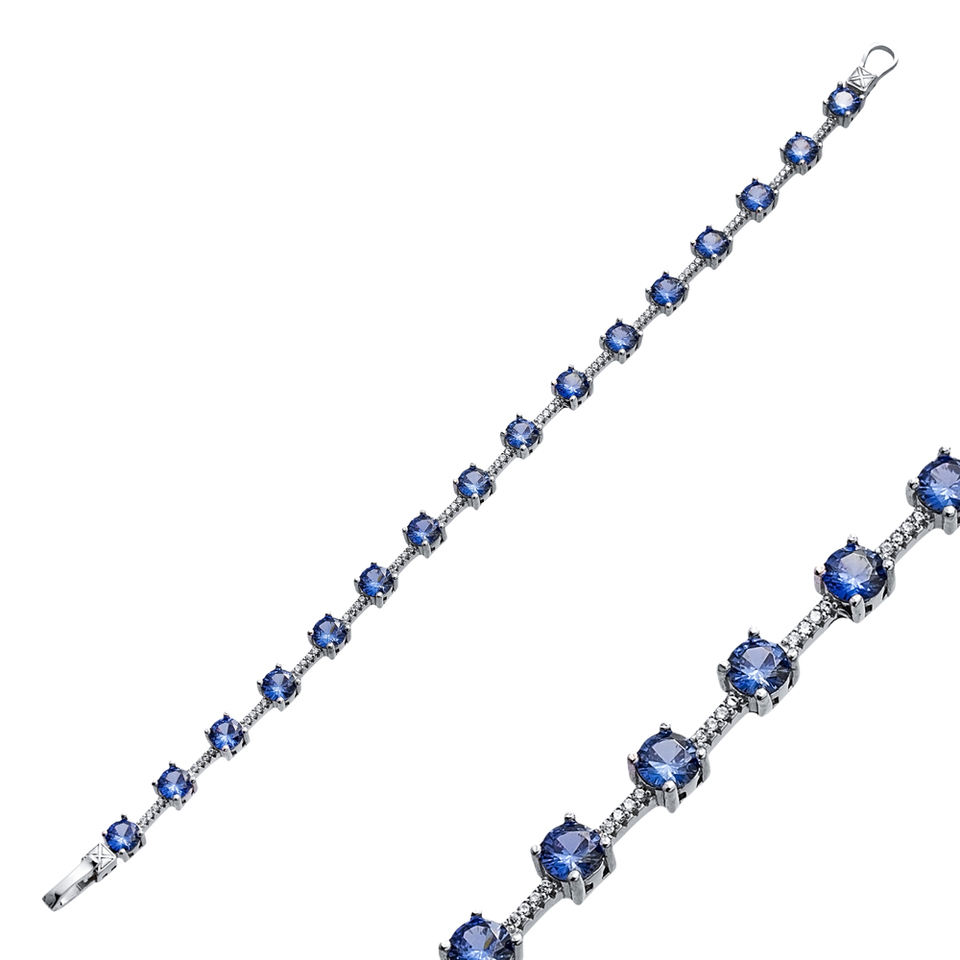 Rond Tanzanite Forme CZ Pierre Cluster Tennis Bracelet En Gros À La Main Femmes Turc 925 Bijoux En Argent Sterling