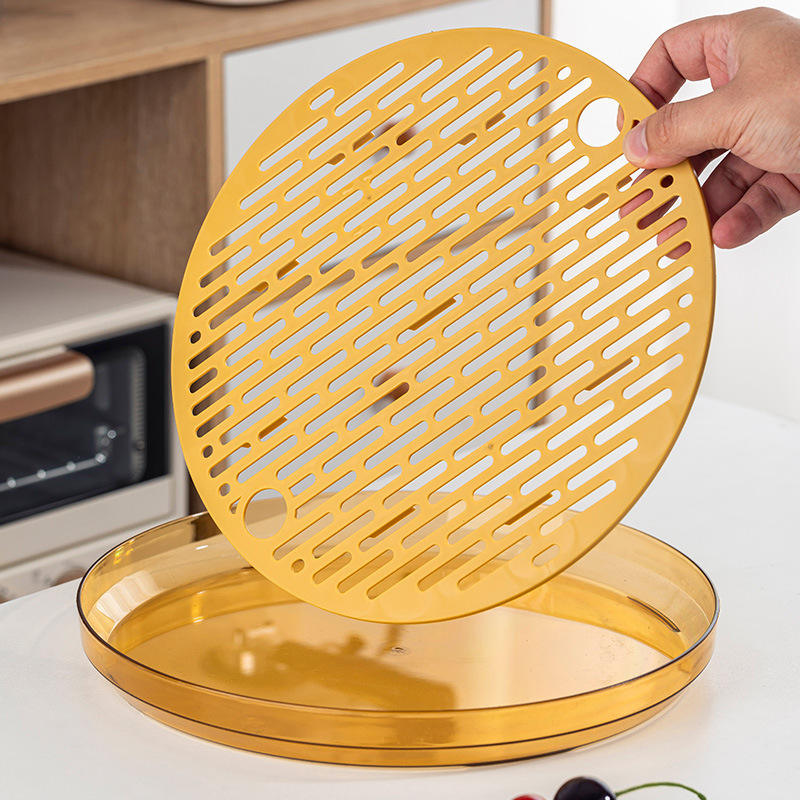 Plateau à thé rond pour service à thé Kung Fu, diamètre 28 cm, avec égouttoir, passe au lave-vaisselle, design moderne, usage domestique