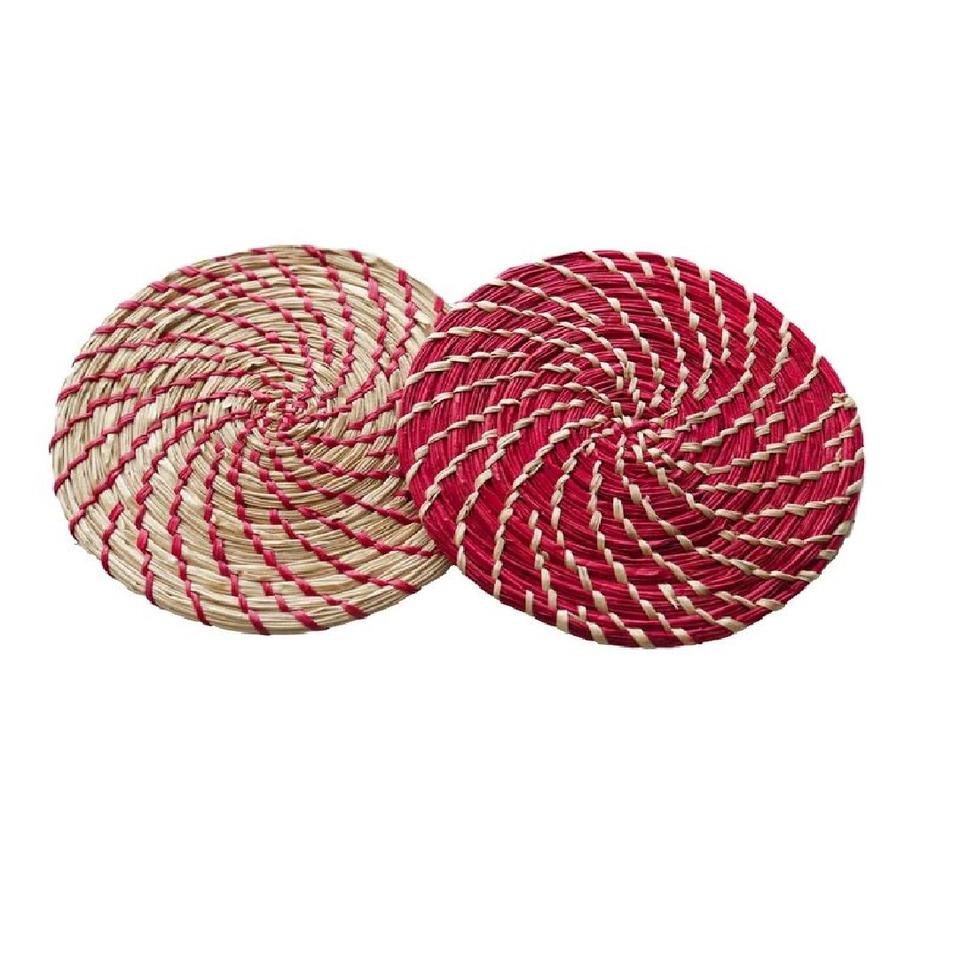 Ensemble de 2 dessous-de-verre ronds pour thé et tasses, en rotin tressé, finition naturelle, parfait pour les événements de mariage et les repas à domicile