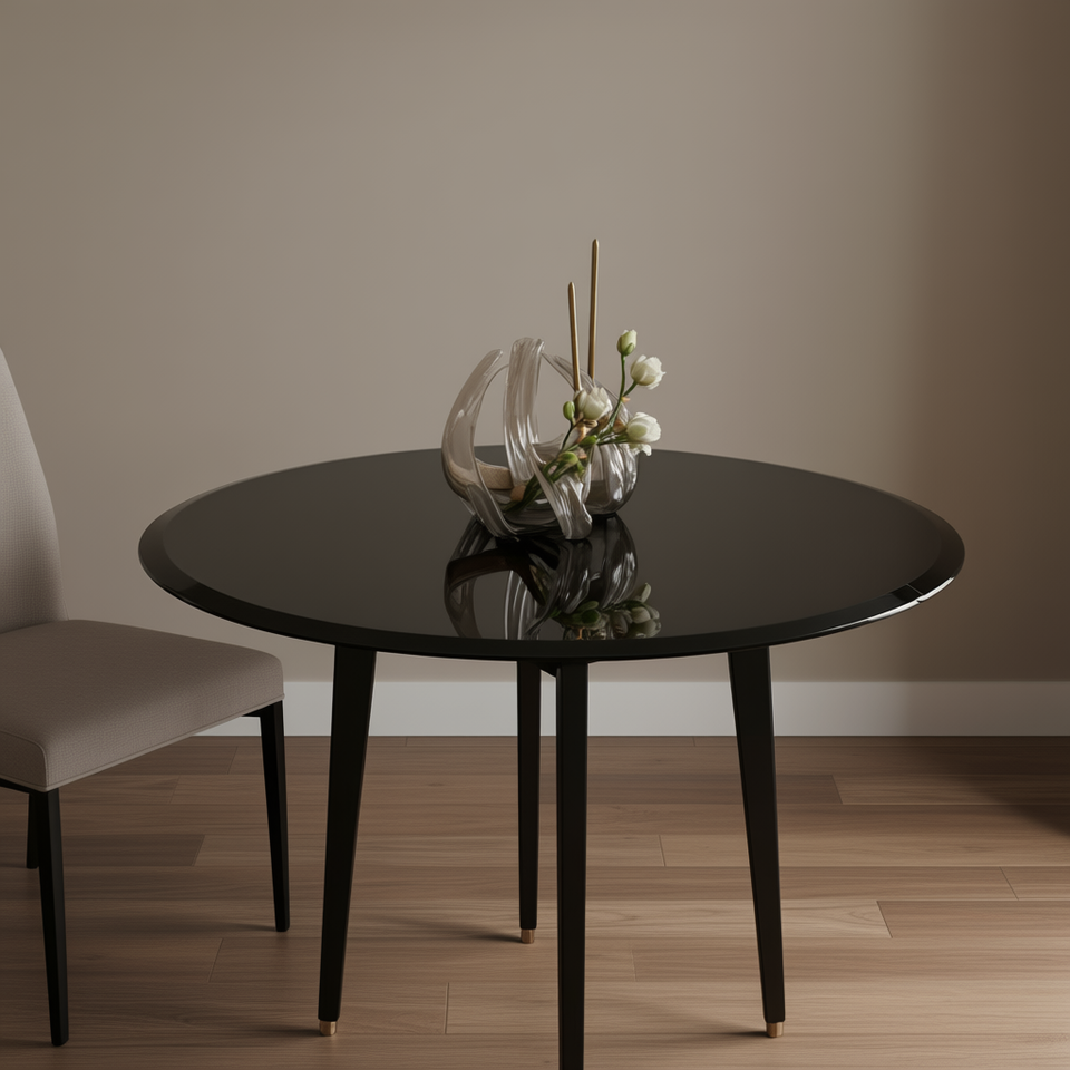 Plateau de table rond en verre trempé, 28 pouces, noir, 3/8 pouces d'épaisseur, bord biseauté, table à manger élégante