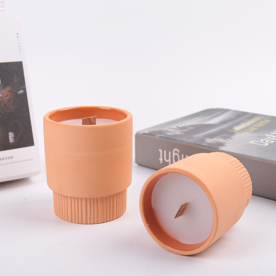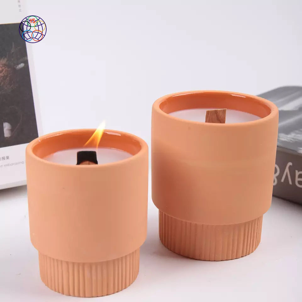Support de bougie rond en terre cuite pour la fabrication de bougies écologiques, décoration de la maison, Noël, fait à la main avec impression en relief