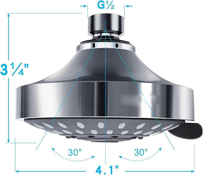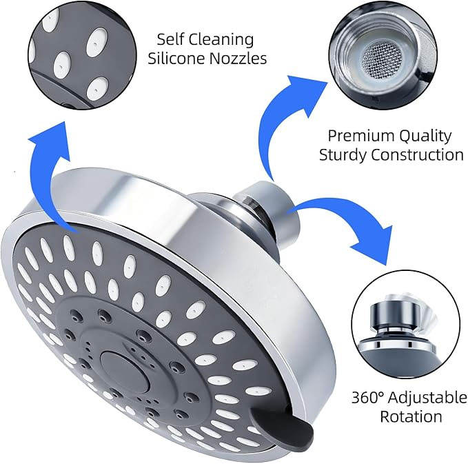 Pommeau de douche fixe à 5 réglages avec tête de douche pivotante réglable, haute pression, effet pluie, pour hôtel ou salle de bain