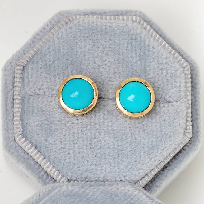 Boucles d'oreilles rondes en turquoise Boucles d'oreilles en argent sterling 925 plaqué or 14 carats, pierre naturelle de la belle au bois dormant