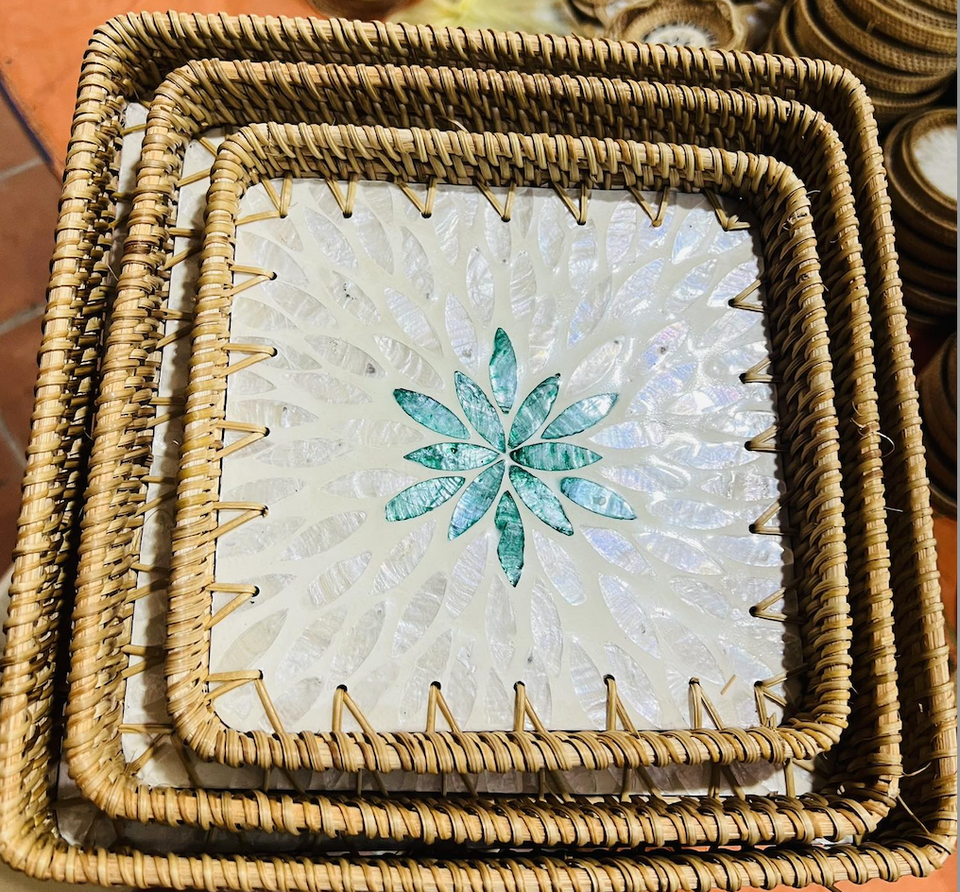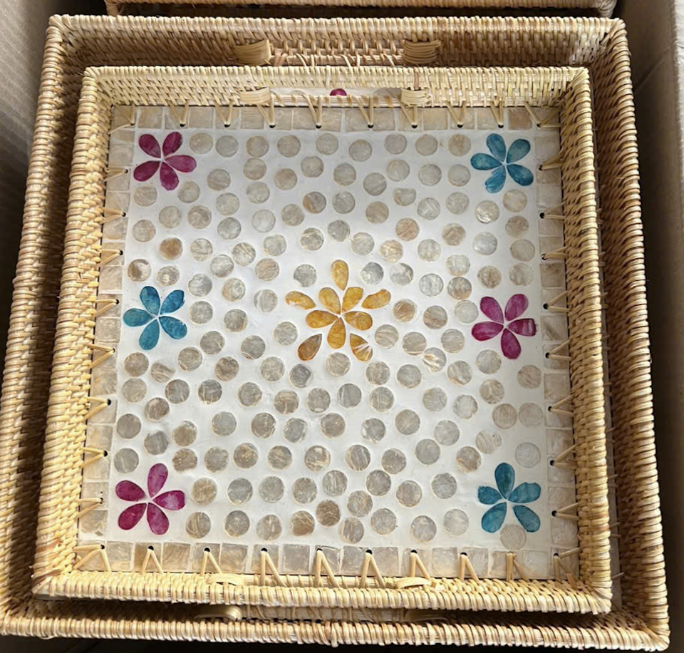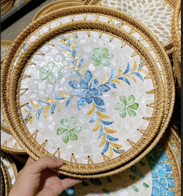 Plateau de service rond en rotin vietnamien panier tissé à la main pour fruits pain café boissons affichage des aliments et décor de table