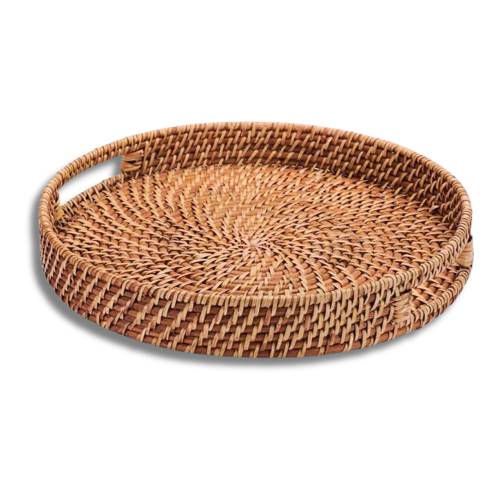 Panier / Plateau rond en rotin tressé avec 2 poignées latérales, plateau de service tissé pour la salle à manger, artisanat vietnamien
