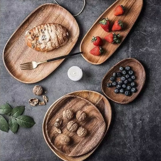 Round Wood Dinner Plates Acacia Wooden Round Plate Kitchen Platter Versatile Tableware for Dishes Snack Dessert