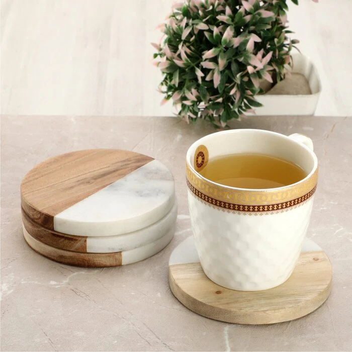 Sous-verre rond en bois et marbre Porte-gobelet à thé Nouveau design Sous-verre en bois en gros pour décoration de table et accessoires