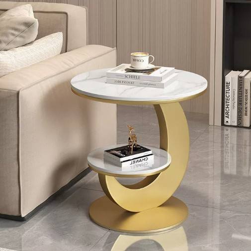 Table d'appoint ronde en bois avec étagère de rangement pour salon, chambre à coucher, usage domestique