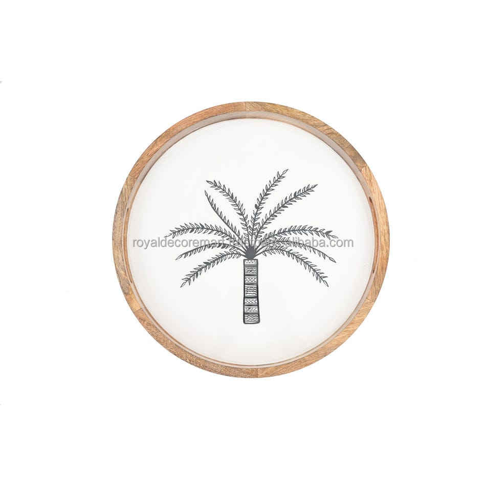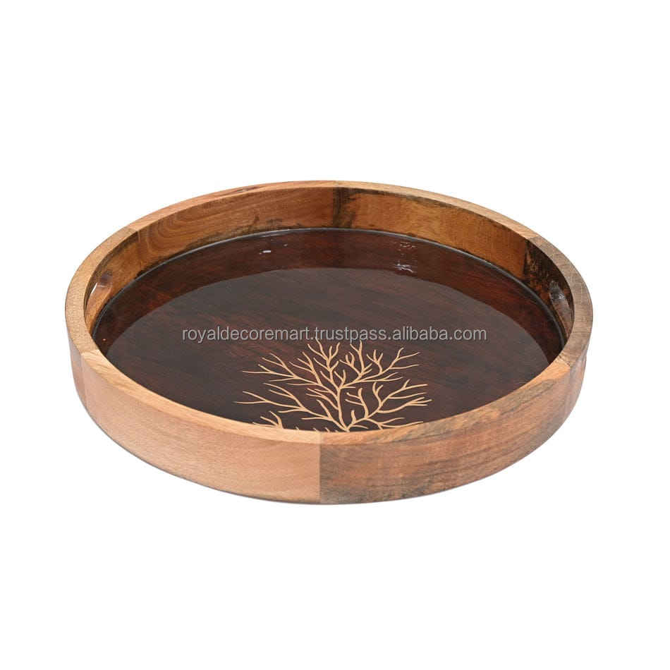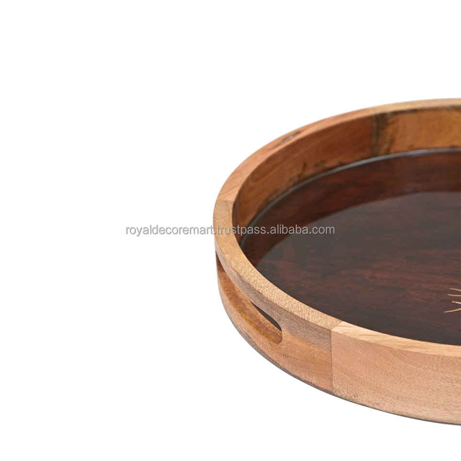Royal Decore Mart Plateau de service en bois de manguier rond et durable fait à la main avec finition polie pour la maison Café Tables à manger Décoration intérieure
