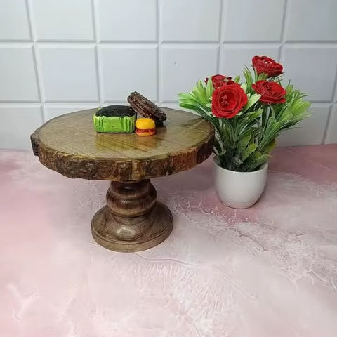 Wooden Eco-Friendly Handmade Luxury Cake Stand Tall Pedestal Base Elegant Display Customizable Cakes Pastries Fruits Dishwasher