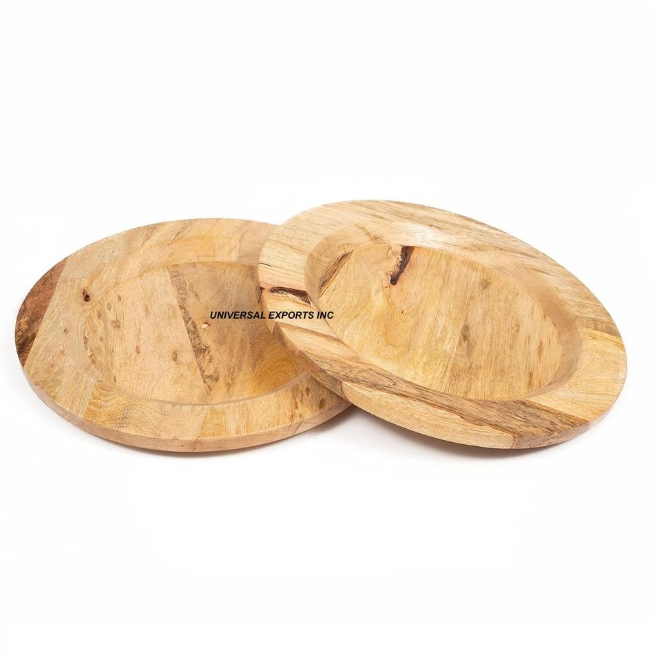 Assiette de présentation ronde en bois vaisselle de table décorative de mariage sous l'assiette assiette de présentation fantaisie en bois vente chaude