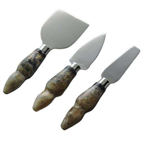 Manche rond en bois avec spatule/épandeur de fromage et couteau en acier inoxydable de qualité alimentaire pour ensemble de fromage de cuisine de table de petit déjeuner