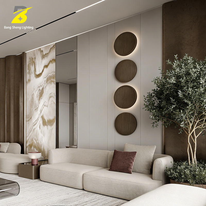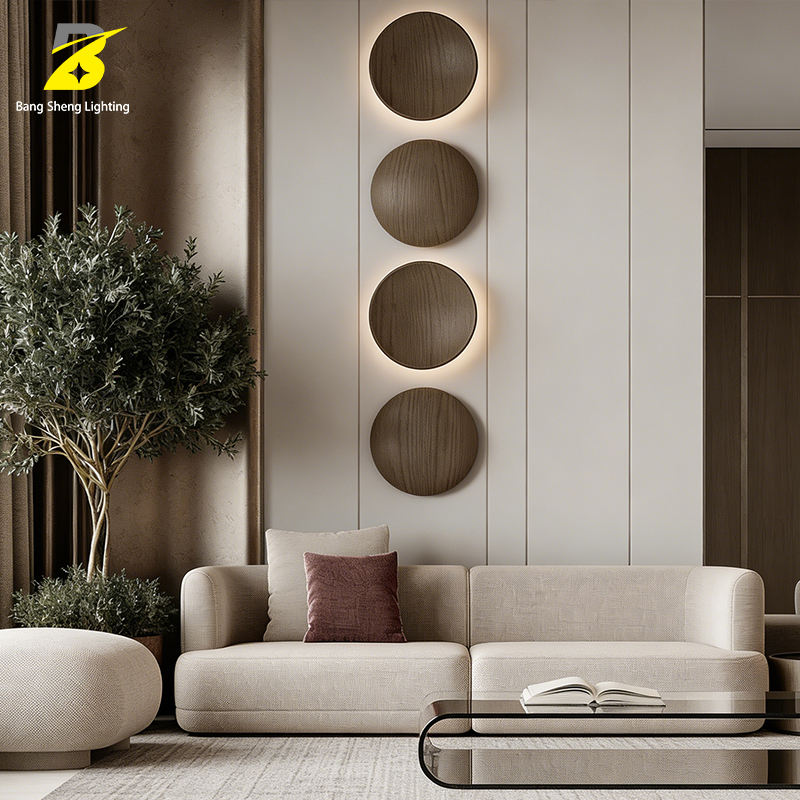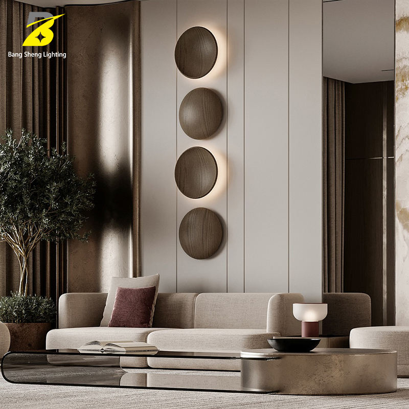 Applique murale LED ronde en bois - Décoration minimaliste pour salon et chambre