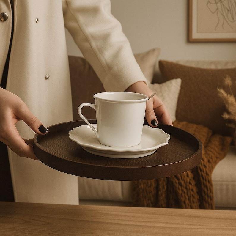 Plateau de service rond en bois moderne fabriqué à la main en bois d'acacia naturel de tailles S/M/L pour la cuisine et la décoration intérieure