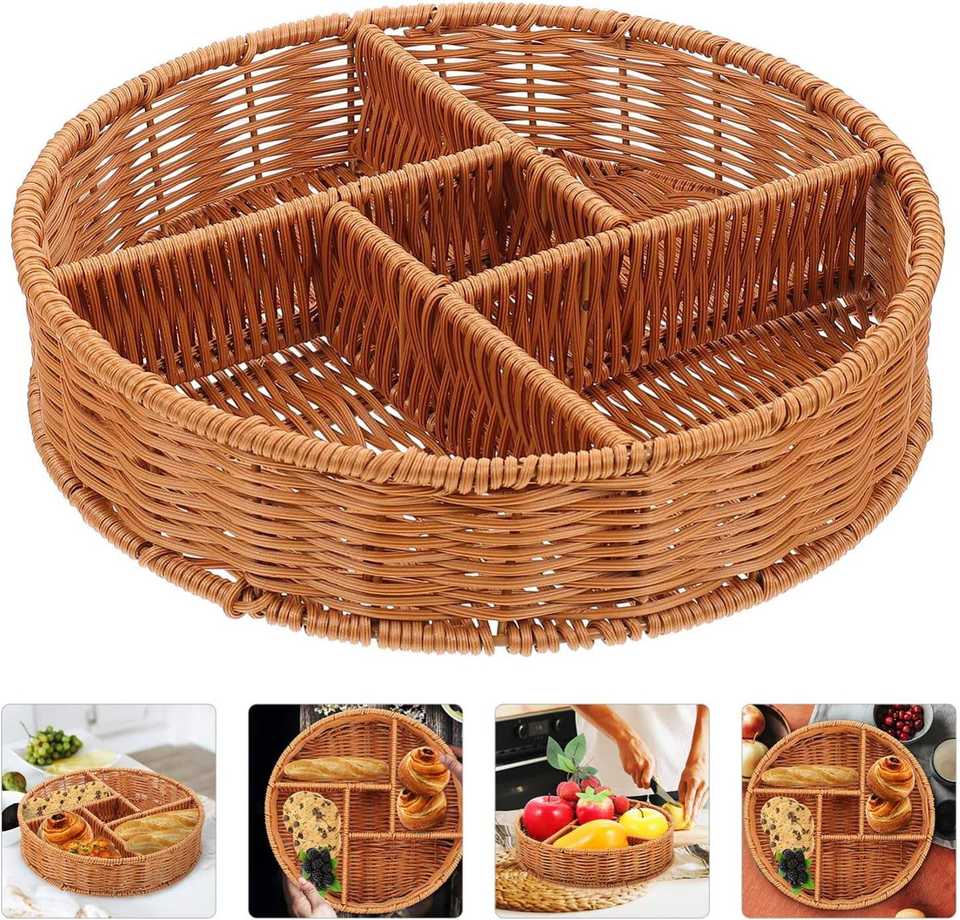 Panier à pain rond de style tressé, bol de service en rotin rustique pour la maison et l'extérieur