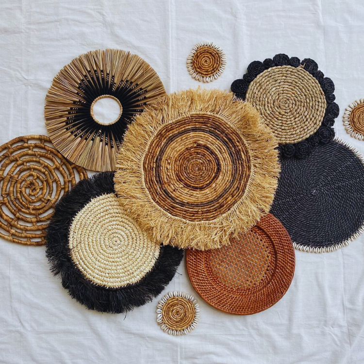 Décoration murale tissée ronde Décoration murale tissée en jonc de mer artisanale authentique Fabrication vietnamienne d'origine durable