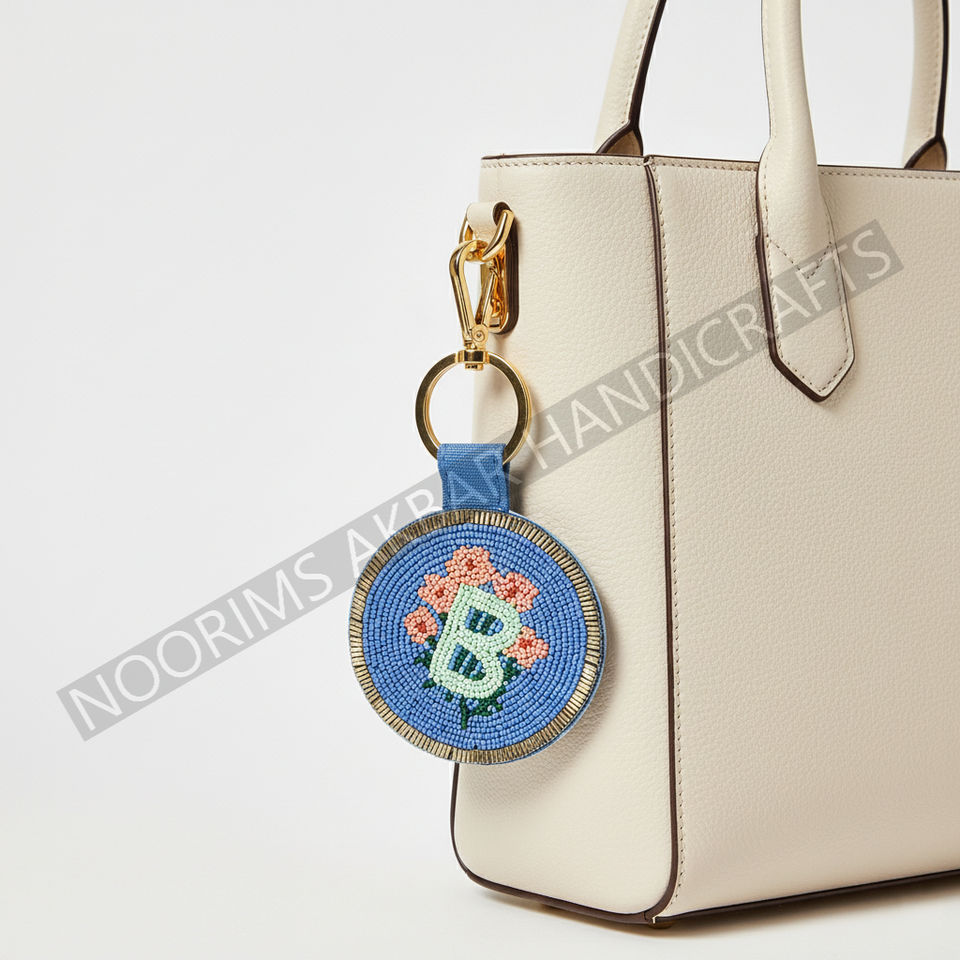 Porte-clés rond avec logo perlé, adapté aux importateurs de produits promotionnels à la recherche de designs artisanaux colorés
