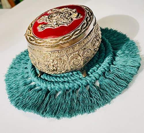 Dessous de verre rond en macramé avec une texture bohème confortable et une palette neutre adaptée à un décor à thème naturel ou à un usage quotidien
