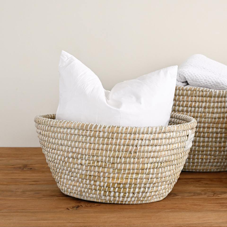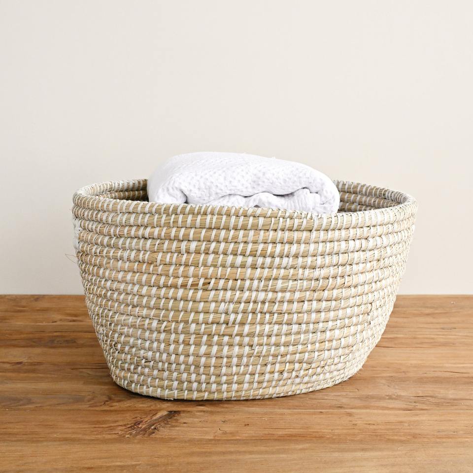 Panier à linge rond en raphia pour grands paniers de rangement en jonc de mer rangement pour la maison et la cuisine