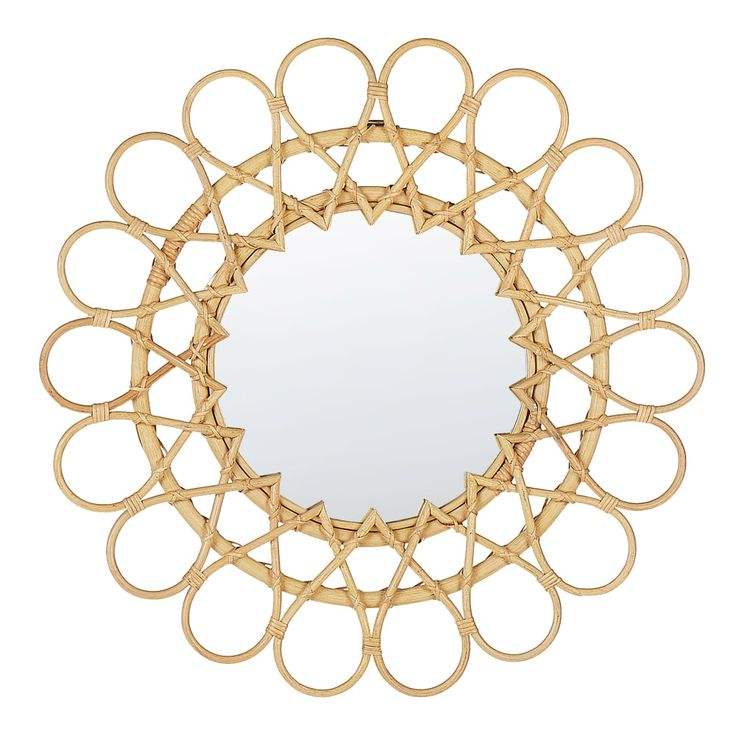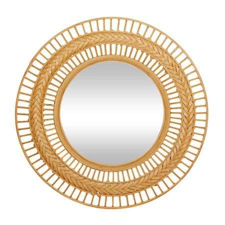 Miroir mural rond en rotin avec cadre tissé parfait pour les maisons de plage côtières chambres boho chic et les cuisines de ferme rustiques