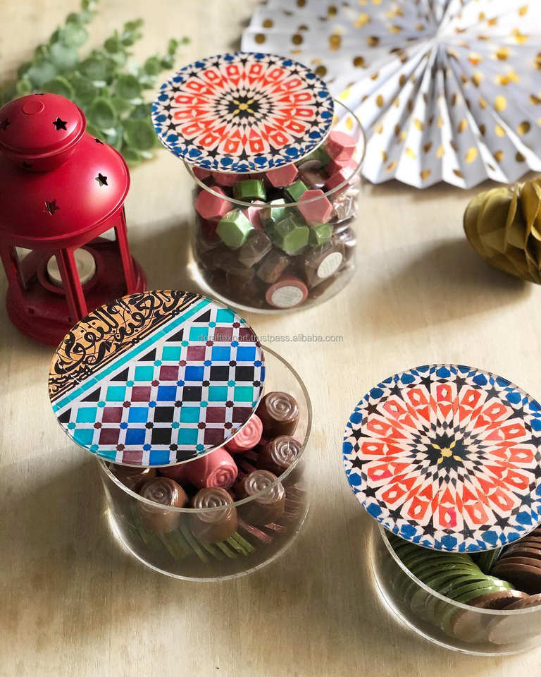 Boîte cadeau ronde en acrylique avec phrases arabes imprimées en émail, boîte à chocolats, boîte à bonbons, décoration de la maison, cadeaux pour les fêtes de mariage