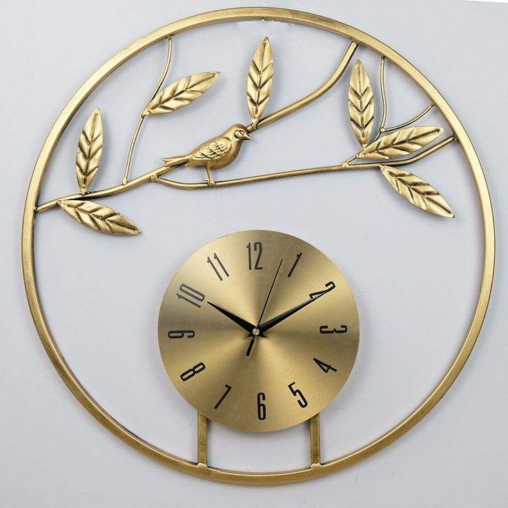 Horloge murale en métal de forme ronde avec finition marron pour accessoire de décoration de salon ou de chambre à coucher